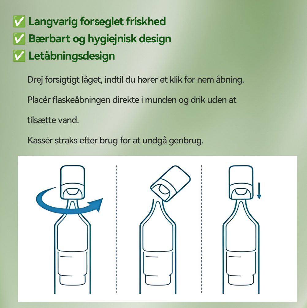 ๐Ÿ€ ร‰n dosis hver dag, anbefales efter mรฅltider. Drikkes direkte โ€” ingen fortynding nรธdvendig.